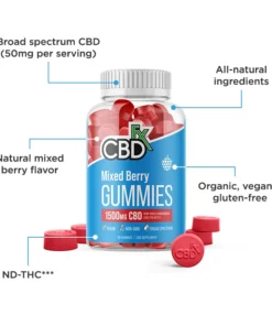 CBDfx, Original Mixed Berry CBD Gummies, Broad Spectrum THC-Free, 60ct, 1500mg CBD